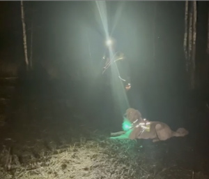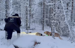 Kuvassa Karhunen, toinen pelastuskoirani, joka on juuri ottanut rullan (ns. norjalaismalli) suuhunsa löydettyään piiloutuneen henkilön.